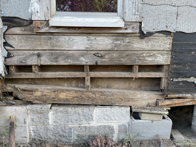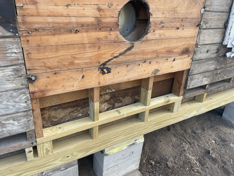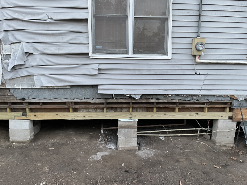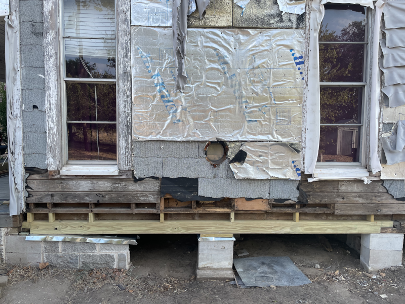 I’ve replace the two main permitter sill beams on this side of the house since they were the worst off in damage. This took lifting the house in areas with 20 ton rated bottle jacks. I bought three of them, which were the only three in town I could find. I had to actually hunt them down because it seems nobody either keeps them in stock, or someone is buying them up. Anyhow, there’s a system to this so that you don’t damage the house, but it’s not that complicated.