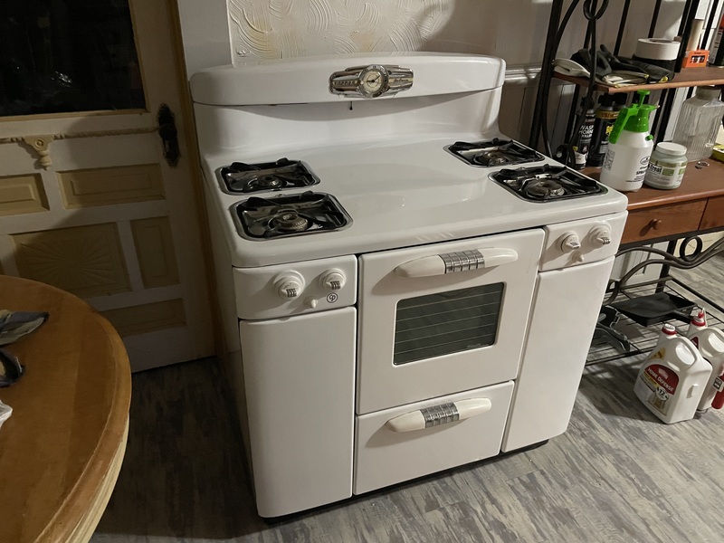 I plan for both my kitchen and bathroom to have a late 1940's to early 1950's theme with some arts and crafts decorative styles intermixed. It doesn't have to be absolutely on spot; other items from previous decades would be welcomed too so long they have a contributing cozy style that I find tasteful. I wanted a gas stove anyhow and figured this would be tons more fun and look way cooler than any modern crap that sticks out like an ugly sore thumb!