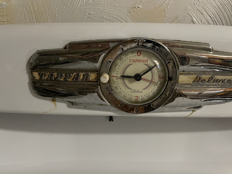 I recently bought this 1950's Tappan Delux gas stove, which I plan to use some time by next year when I'm able to get around to installing the propane. It's in almost perfect condition, and according to the previous owner it does work! I hooked it up to power so that the clock and stove top light would at least work in the meantime.