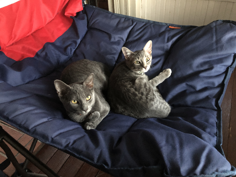 Here’s a picture of my cats too. They like watching me from the window sill in the cool house while I’m outside working. I setup this chair to watch my grill on the porch from inside, but they claimed the spot once I got up to flip the patties.