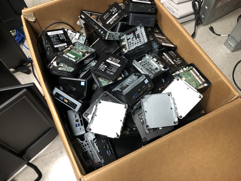 Meanwhile at work, we’re still throwing out old servers and computers. Some of it’s new though, like the Intel NUC’s that were bought roughly two to three years ago. This round isn’t nearly as much as the first round, which I think I estimated was worth around $80,000 just thrown out…This round I don’t know, I didn’t really count them this time. We did have to pull them apart to remove the hard drives though which took a lot of time.