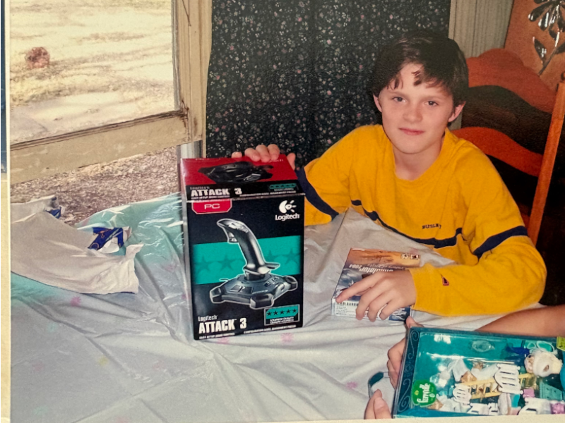 I still have the original joystick and copy of the game to this day, which came with four discs and a manual in color print. You can see me with it in the following pictures.